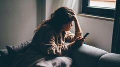 Getty Images Woman appearing sad, holds her phone in one hand and her head in another. She is sitting on a sofa, wearing a blanket and looking out of the windowGetty Images