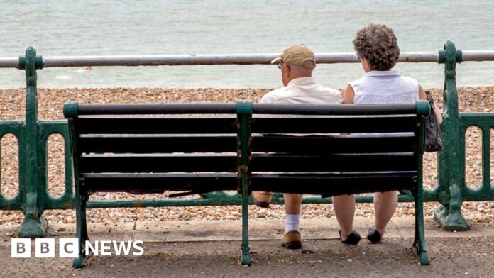 Couple sitting on a bench on the beachfrontImage source, Getty Images