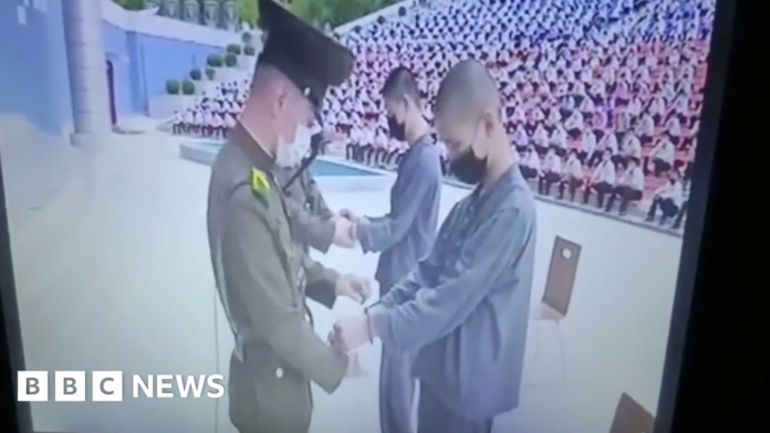 Rare footage obtained by BBC Korean shows North Korea publicly sentencing two teenage boys to 12 years of hard labour for watching K-dramas.