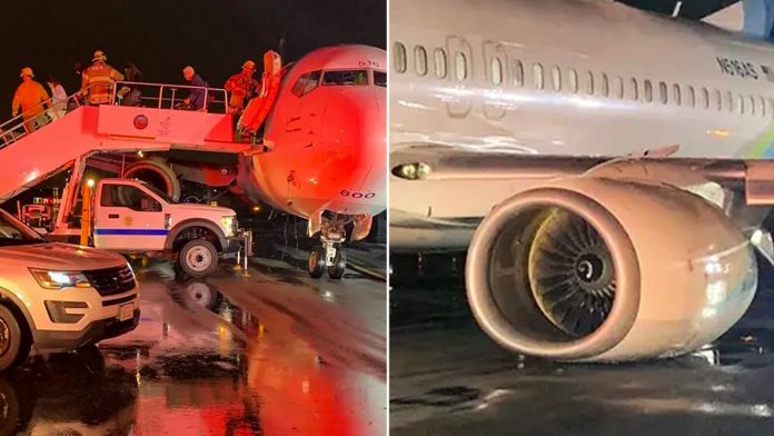 Video recorded by a passenger captured the plane slamming into the ground at high speed. Sparks were seen flying as the plane appeared to drag its left wing along the tarmac.